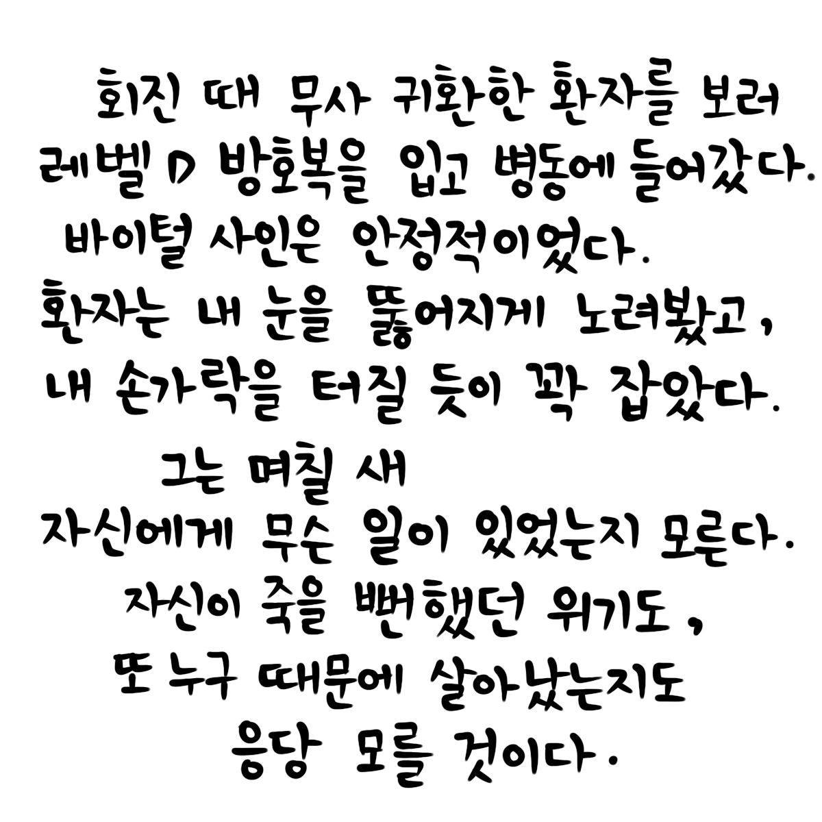 레벨 D 방호복을 입고 병동에 들어갔다.