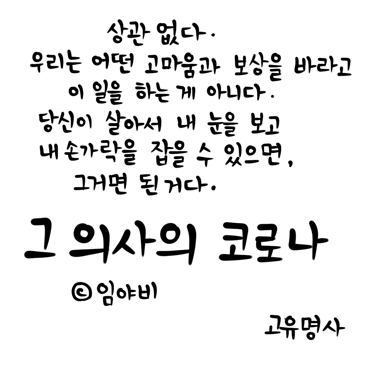 내가 할 일을 한다. 임야비 - 그 의사의 코로나 (0) | 2023.07.28 |