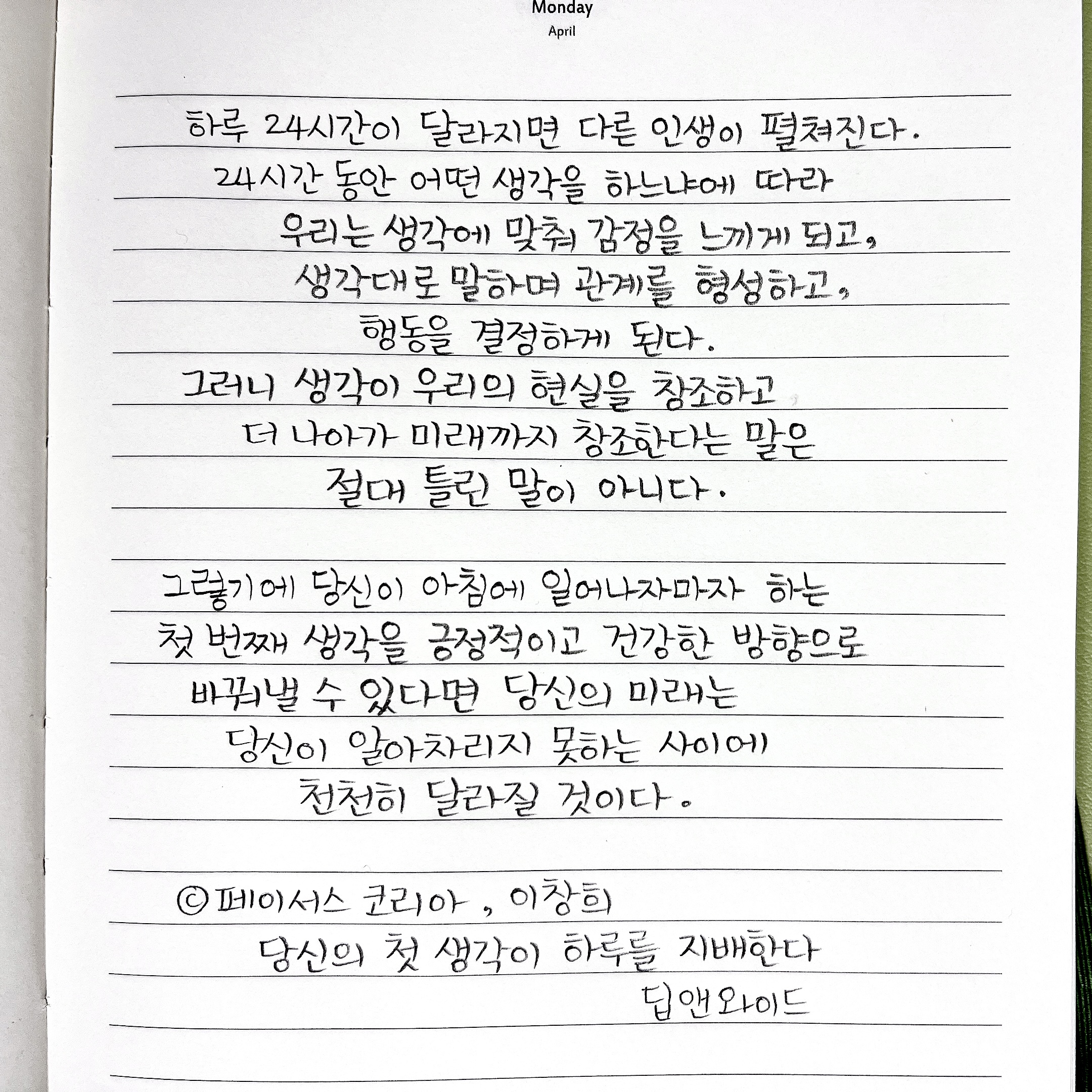 하루 24시간이 달라지면 다른 인생이 펼쳐진다.