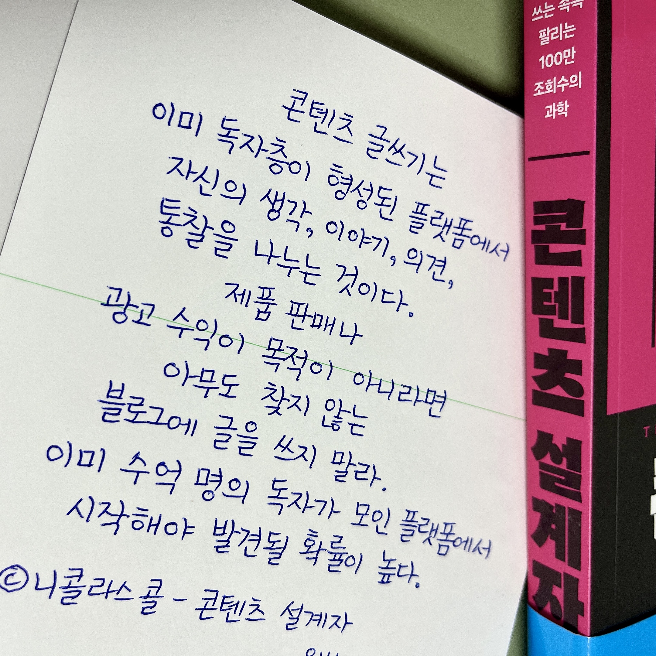 | 가장 강력한 비즈니스 도구, 글쓰기. 니콜라스 콜 - 콘텐츠 설계자 (0) | 2026.02.24 |