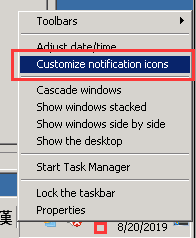 다시 트레이 (시계 옆) 우클릭 -> Customize notification icons 클릭.