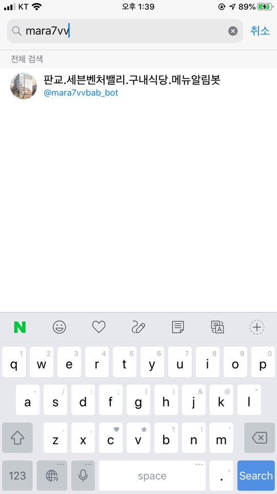 아래 그림처럼 봇이 검색되면 터치하셔서 채팅을 시작하세요.