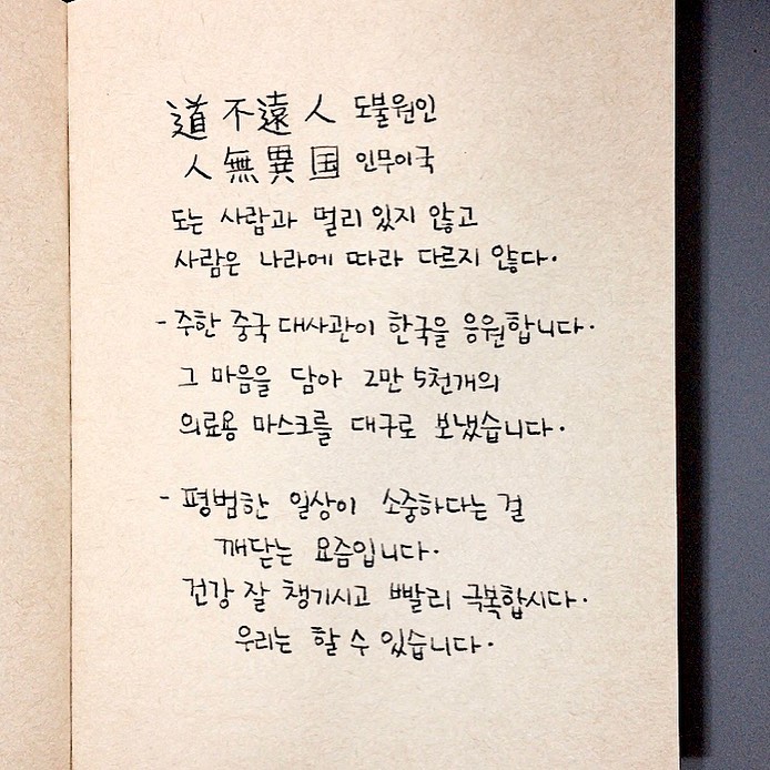 주한 중국대사관이 한국을 응원합니다.