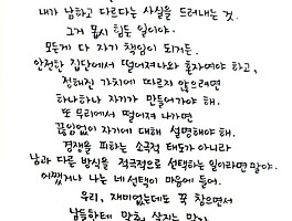 전체 글 (2771) 썸네일형 리스트형 [아무리 어려도] - 은희경, 소년을 위로해줘 . 아무리 어려도 자기 자신에 대해서라면 할말이 있는게 인간이다. 갓난아기들이 우는 것도 자기 이야기를 하고는 싶은데 말을 하지 못해서이다. . 또 아무리 별볼일 없는 사람에게도 주관과 취향이란 건 있다. 하고 싶은 것과 하기 싫은 것, 참을 수 있는 것과 참을 수 없는 것, 소중한 것과 하찮은 것, 그리고 그 모든 이야기를 타인에게 들려주고 싶은 욕망 말이다. . ⓒ 은희경, 소년을 위로해줘. . 오늘도 남들에게 들려주고 싶은 자기 만의 생각과 이야기를 만들어 갑니다. . [도움받아야 할때에] - 은희경, 소년을 위로해줘 . 도움받아야 할 때에 도움 못 받는 거. 그런 걸 고립이라고 하는거야. 고독은 늘 있는 거고 또 자기 문제지만 고립은 달라. 절망하고 상관있단 말야. 생각해봐. 내가 너한테 도움을 줄 수 없어서 일이 크게 잘못됐다. 너, 그거 나한테 아주 나쁜 짓 하는 거야. 안그래? . ⓒ 은희경, 소년을 위로해줘. P250 . 도움을 받을 수 있다면 꼭 도와달라고 해야 합니다. 그러지 못한다 하더라도 도움을 억지로 막지 마세요. . [하고 싶은 것만 하며 산다는 건] - 은희경, 소년을 위로해줘 . 하고 싶은 것만 해도 되긴 하지. 근데 그게 훨씬 더 어려울걸. 내가 남하고 다르다는 사실을 드러내는 것. 그거 몹시 힘든 일이야. 모든게 다 자기 책임이 되거든. . 안전한 집단에서 떨어져나와 혼자여야 하고, 정해진 가치에 따르지 않으려면 하나하나 자기가 만들어가야 해. 또 무리에서 떨어져 나가면 끊임없이 자기에 대해 설명해야 해. 경쟁을 피하는 소극적 태도가 아니라 남과 다른 방식을 적극적으로 선택하는 일이라면 말야. . 어쨌거나 나는 네 선택이 마음에 들어. 우리, 재미없는데도 꾹 참으면서 남들한테 맞춰 살지는 말자. . ⓒ 은희경, 소년을 위로해줘. . 남들 눈치 안보고 하고 싶은데로 하는것. 참 쉽지 않습니다. 그래도 그게 행복이라면 꼭 그렇게 해야겠죠? 내가 하고 싶은게 뭔지 곰곰히 생각.. 억지로 만들어진 불씨는... 억지로 만들어진 불씨는 국민의 힘에 의해서 자연스럽게 꺼질 것이다. 压迫的火焰 会在人民的力量下自燃熄灭。 정치를 외면한 댓가는 가장 저질스러운 자들에게 지배당한다는 것이다. - 플라톤 拒绝参与通知的人, 会被更糟糕的人统治。 - 柏拉图 . 홍콩, 힘내. . [잊으려고 애써왔던, 잊고 살아왔던] - 존박, 이상한 사람. . 잊으려고 애써왔던 것들 잊고 살아왔던 말들 소용없다 믿던 것들 너무 많은데 그댄 그런 모든 걸 한가득 안고서 나를 보며 웃고 있어 . 그댄 나를 또 한 번 설레게 만드는 이상한 사람 . 내가 알던 세상은 모든 게 어려웠는데 몰랐었던 모든 곳이 아름다웠다 그댄 그런 모든 걸 한가득 안고서 나를 보며 웃고 있어요 그댄 나를 또 한 번 설레게 만드는 이상한 사람 . 우리 둘은 얼마나 오래 같이 걷게 될까 이런 것이 궁금해지면 사랑인걸까 . 그댄 나를 또 한 번 긴 꿈을 꾸게 해 . ⓒ 존박, 이상한 사람. . 티비에서 잠깐 나온 노래인데, 너무 좋아서 찾아보니 동백꽃 필무렵 OST 네요. 가사가 정말 좋아서 적어봤습니다. 이상한 사람, 만나고 계신가요? . https://youtu.be/LqzCQVKMbKo 무료 아이콘 사이트 - 아이콘몬스터, 플랫아이콘 제가 그동안 아이콘이 필요할때마다 직접 만들어서 작업했더니 역시나, 퀄리티가 확 떨어지는데요. 그래서 무료 아이콘 사이트를 찾아봤습니다. 저는 아이콘파인더보다 두 곳이 맘에 들더군요. 아이콘 몬스터 : http://iconmonstr.com 아이콘몬스터, 아주 깔끔하네요. 아래 플랫아이콘 사이트는 좀더 다양하고 조금 화려합니다. 플랫아이콘 : http://flaticon.com 두 곳 모두 상업용으로도 무료로 사용 가능합니다. 참고로, 아이콘파인더는 Free 를 체크하셔야 무료 아이콘이 검색됩니다. 아이콘파인더 : http://iconfinder.com 금손들이 참 많네요 ~ 녹스에서 DX : 신세기의 전쟁 - 실행 안될때 설정 -> 고급설정에서 성능설정 : 상 (4Core / 3072MB 메모리) 그래픽 모드 : 호환+모드(Beta) 이렇게 바꾸고 해보세요. 저도 안되다가 저렇게 바꾸니 실행됩니다 ~ [텔레그램봇] 판교 씨즈타워 구내식당 메뉴/식단표 알림봇 - 현재 동작 안함. * 해당 봇은 현재 동작하지 않습니다. 텔레그램 검색 -> maraczbab_bot 앞에 maracz 만 쳐도 됩니다. 아래 그림처럼 봇이 검색되면 터치하셔서 채팅을 시작하세요. . 봇을 시작하면 도움말이 표시됩니다. 나중에 /help 로 다시 도움말을 볼 수 있습니다. 메뉴 알림 설정방법. 알림 추가, 수정하기. add 명령어 뒤에 점심, 저녁 구분을 적고 (2, 3) 시간을 적으면 됩니다. 시간은 11:30 으로 적어도 되고, 1130 으로 적어도 됩니다. /add 2 1130 이전 1 ··· 308 309 310 311 312 313 314 ··· 347 다음 * 쿠팡 파트너스 활동을 통해 일정액의 수수료를 제공받을 수 있습니다.